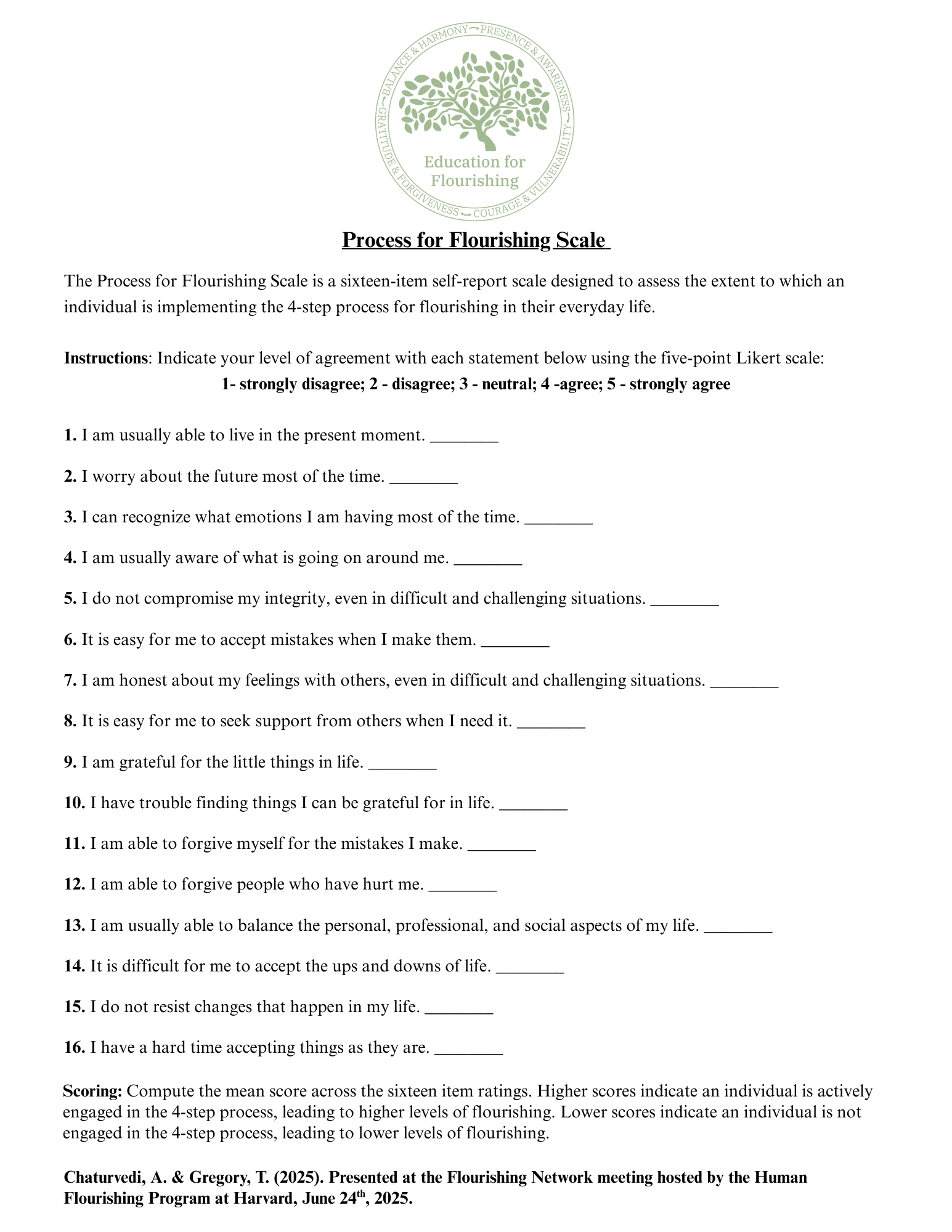 Assessments Process for Flourishing Scale Learn More Work Contribution to Flourishing Scale Learn More School Contribution to Flourishing Scale Learn More
